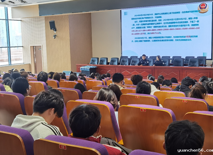 为全面普及防电信网络诈骗知识,提高学生反诈骗安全意识,11月13日下午保卫处联合师范学院、纺织服装学院和资源与环境工程学院,邀请了高邮市公安局刑警大队的梅教导员和周警官在图文中心一楼报告厅给300多名2024级新生普及了常见的电信网络诈骗手段和陷阱,教育大家不要轻信陌生人的来电、短信,不要轻易转账,有问题及时与老师、警察取得联系,提高防范能力。