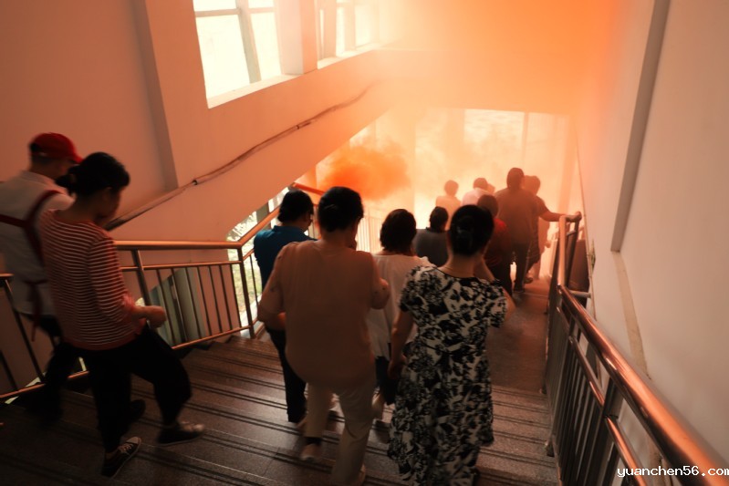 实操演练结束后,一场紧张有序的消防逃生演练在一食堂内展开。随着警报声骤然响起,食堂内浓烟弥漫,模拟火灾场景瞬间启动。全体参训人员迅速进入应急状态,按照既定逃生路线,用湿毛巾捂住口鼻,弯腰低姿,沿着安全通道有序撤离至室外安全区域。整个演练过程紧张有序,工作人员反应迅速、配合默契,充分展现出培训成效。
