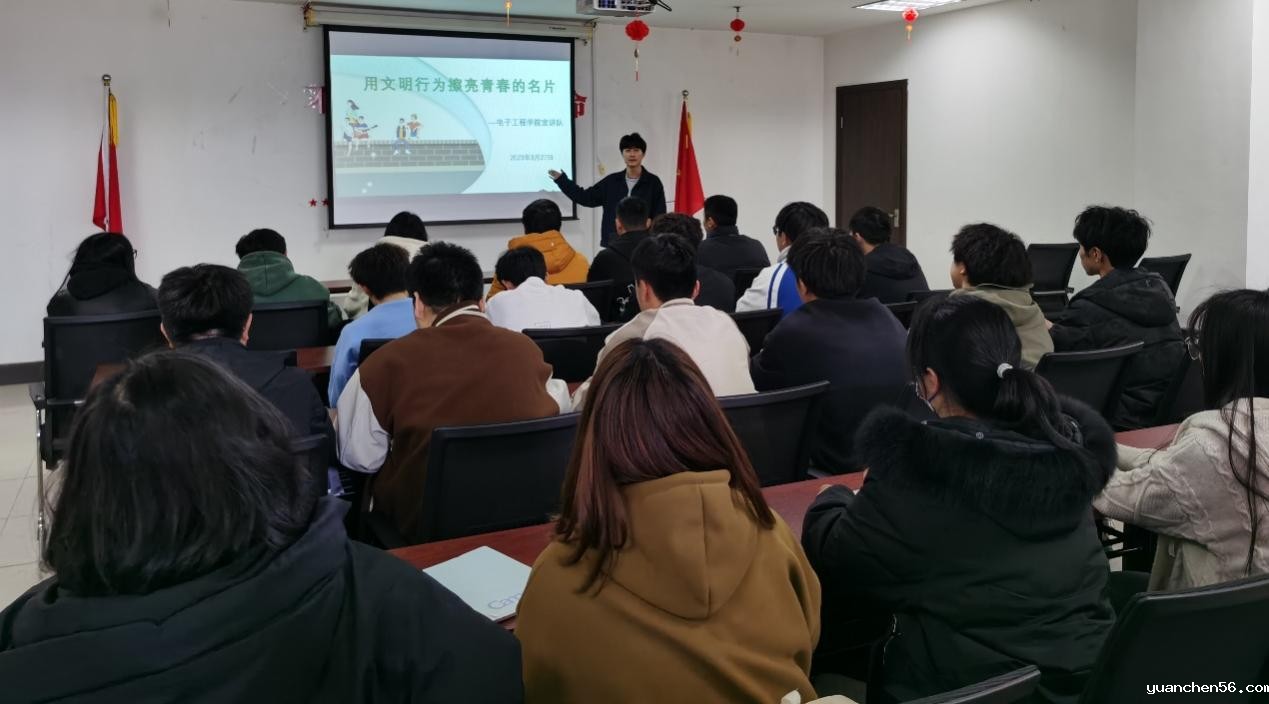 为推动学生文明修身工程进一步走深走实,近日,电子工程学院从“邮之声”志愿队和“书之韵”连环画社的成员中遴选三位同学组成文明宣讲队,以“用文明行为擦亮青春的名片”为主题到各班进行宣讲,倡导全院同学争做懂礼节、正仪表、善交往、勤劳动的新时代大学生。
