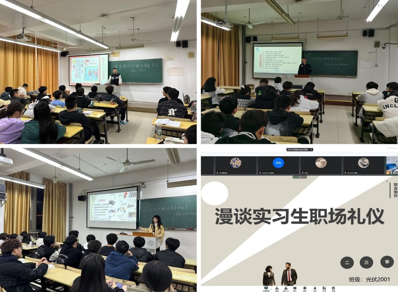 学院文明宣讲队还为校外实习的2020级各班同学开展了线上宣讲。光伏2001班班长戴业航同学组织召开以“漫谈实习生职场礼仪”为主题的“云”班会,向实习中的同学们科普职场礼仪小知识,大家觉得很实用。