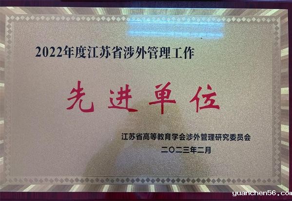 近日,我校参加了在镇江举办的江苏省高等教育学会涉外管理研究委员会2022年年会暨新时代高等教育涉外管理的机遇与挑战研讨会。会上公布了2022年涉外管理工作先进单位和个人,我校荣获“2022年度江苏省涉外管理工作先进单位”荣誉称号。