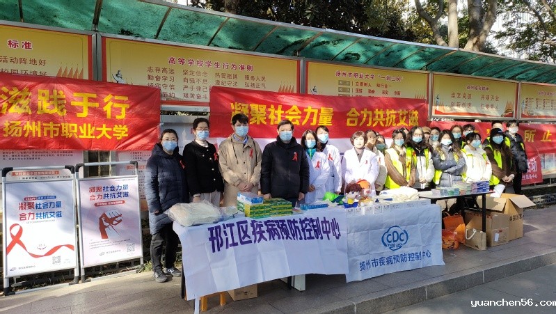 当天下午,组织14名师生参加扬州市卫生健康委员会、邗江区卫生健康委员会、扬州市疾病预防控制中心、邗江区疾控预防控制中心在万达广场联合举行的艾滋病防治宣传活动,活动现场同学们表演了精彩的舞蹈,并踊跃参加现场答题、知识竞赛和防艾宣传等活动。