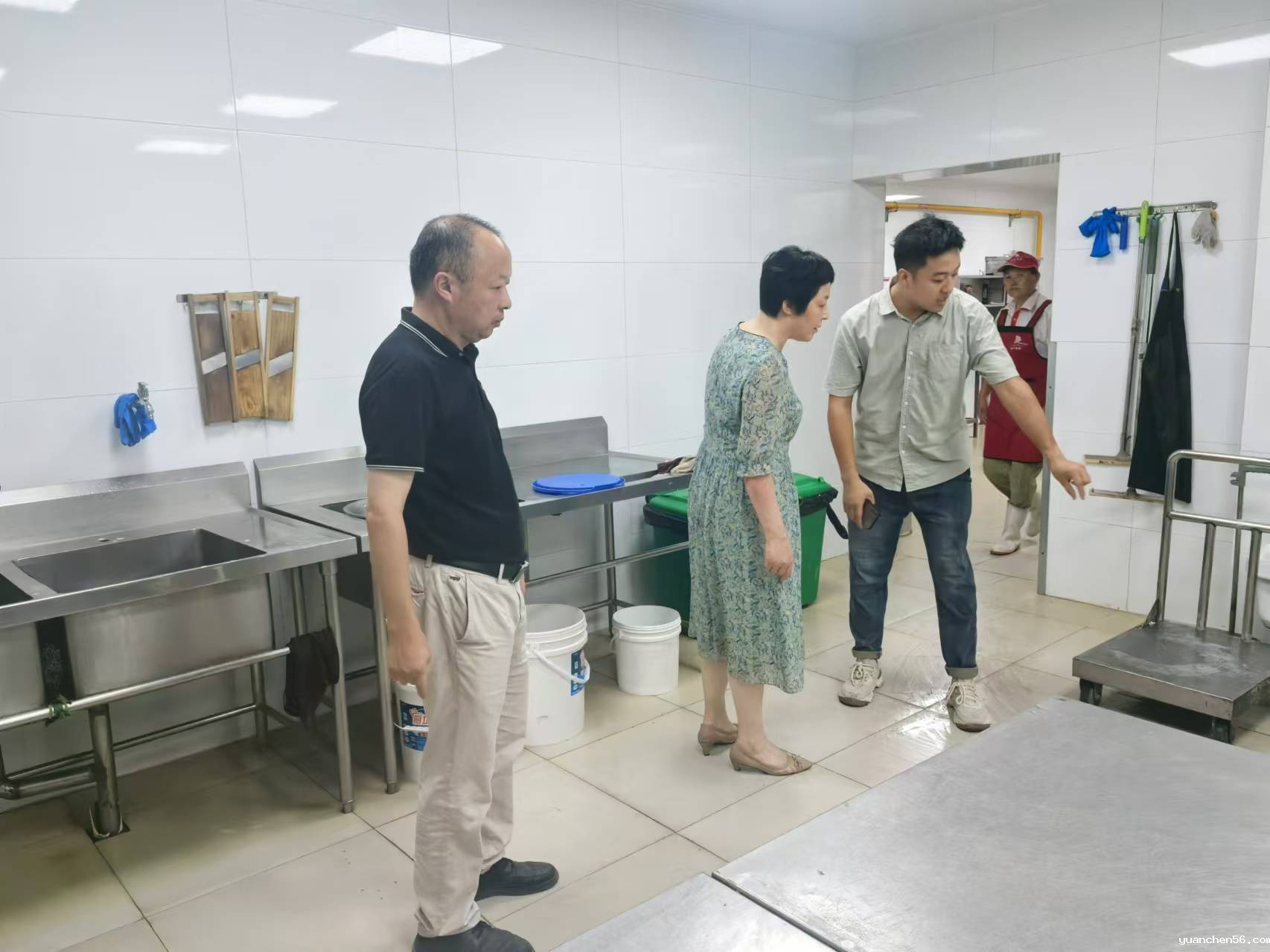 翟校长听取了饮服中心负责人关于学生餐厅暑假升价改造、食品安全管理、原材料采购、食品加工流程、环境卫生及工作人员健康管理等方面的工作汇报。随后,翟校长走进后厨,对食材储存区、加工区、烹饪区及餐具清洗消毒区等关键环节进行了逐一查看。检查过程中,翟校长特别强调了食品安全的重要性,要求食堂务必做到食材源头可溯、过程可控、风险可防,严格执行国家食品安全法律法规,确保食材新鲜、无污染,加工过程规范卫生,不留任何安全隐患。