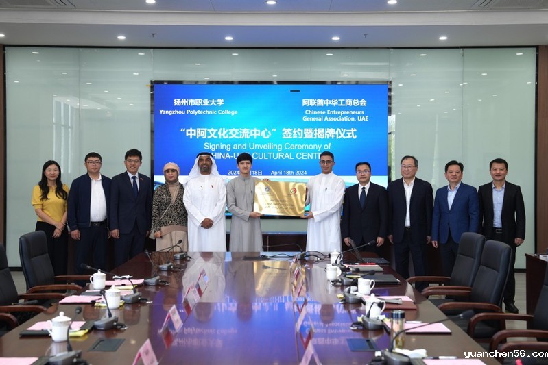 4月18日下午,由阿联酋中华工商总会和我校共同合作的“中阿文化交流中心”签约揭牌仪式在学校科技综合楼301会议室举行。阿联酋西部战略投资局局长默罕默德·萨利姆,阿联酋中华工商总会常务副会长朱明涛,阿联酋多元文化传媒副总经理胡君,扬州市副市长吴边,学校党委书记马顺圣,校党委副书记、校长周春光,校党委委员、副校长花军,相关部门、学院负责人及留学生代表参加了活动。
