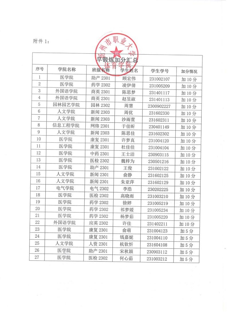 根据学校《关于开展早锻炼工作的通知》,体育学院在活动结束后统计了“智慧晨跑”微信小程序和“keep”软件的完成次数。早锻炼完成次数超过35次(含35次),《大学体育》课程总成绩加5分。早锻炼完成次数超过40次(含40次),《大学体育》课程总成绩加10分。涉及加分学生应主动与《大学体育》课程授课老师联系,由授课老师给予加分奖励。